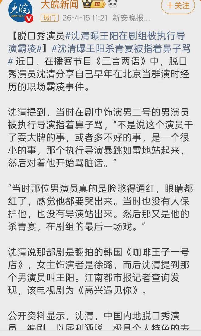 近日,有消息传出演员王阳早年在剧组遭遇职场霸凌,引发不少网友心疼。